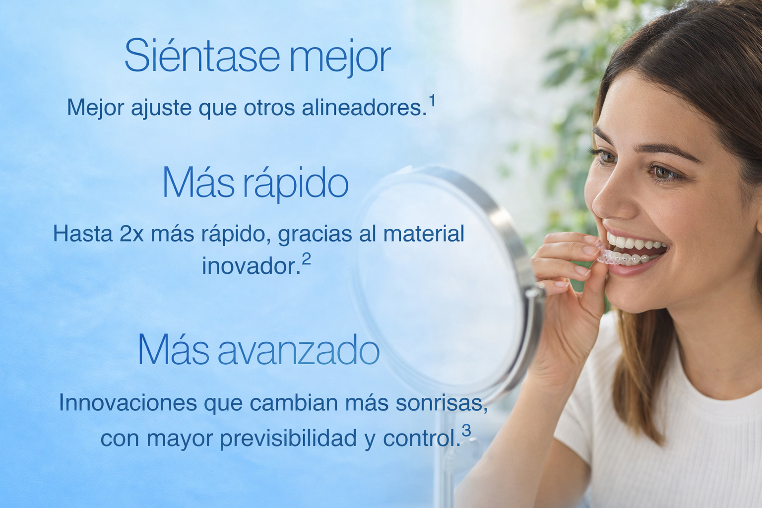 Los alineadores son transparentes, por lo que puedes sonreír, hablar y relacionarte con confianza durante todo el tratamiento, sin brackets ni alambres visibles.